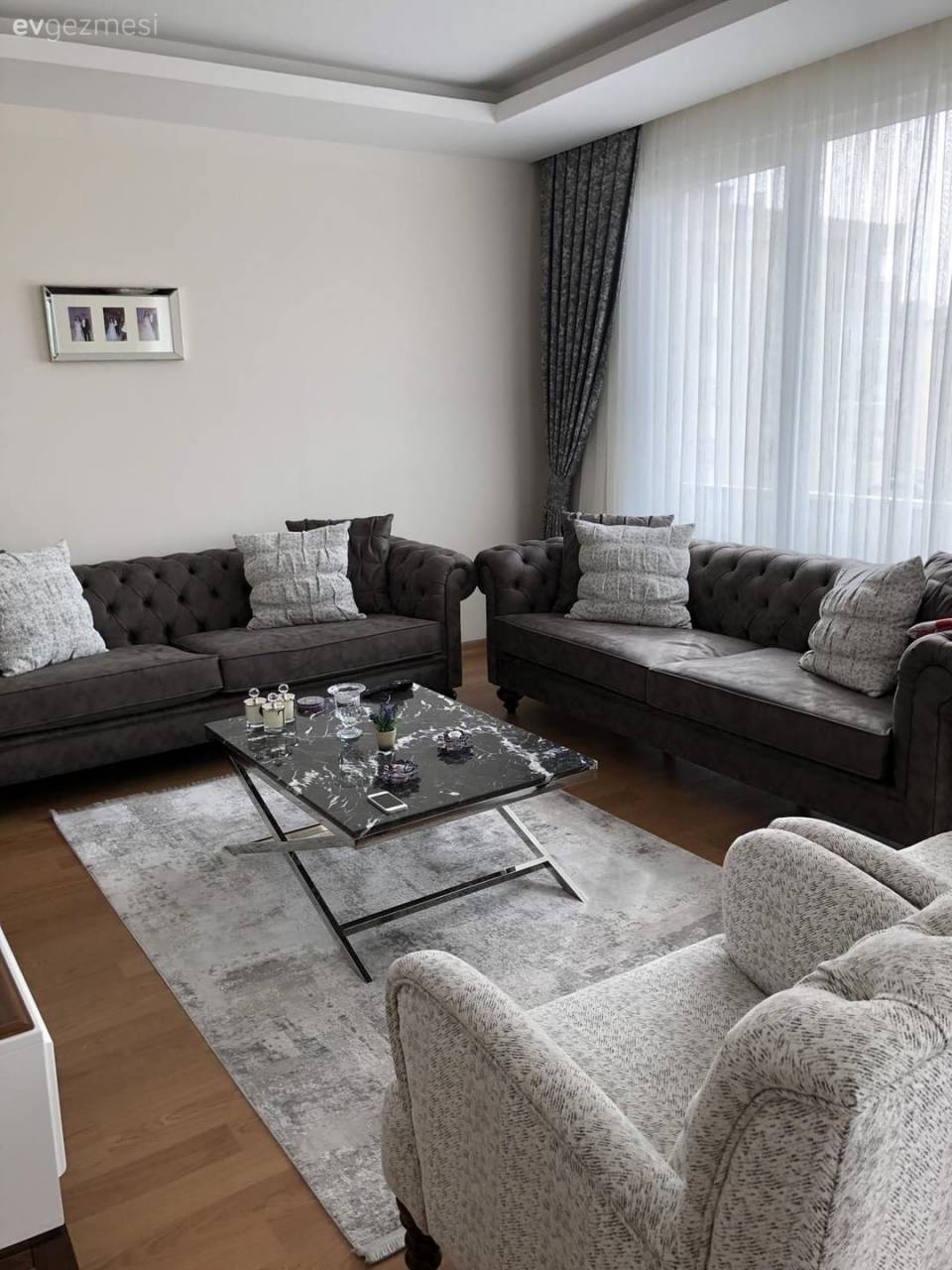 Bir 3 lü kanape karşısına 2 berker arasına küçük bir sehba, camın önüne büyük bir çiçek yada çiçek lik içine dekoratif saksılarda bi kaç çiçekle aydınlık ve ferah bir oda olabilir