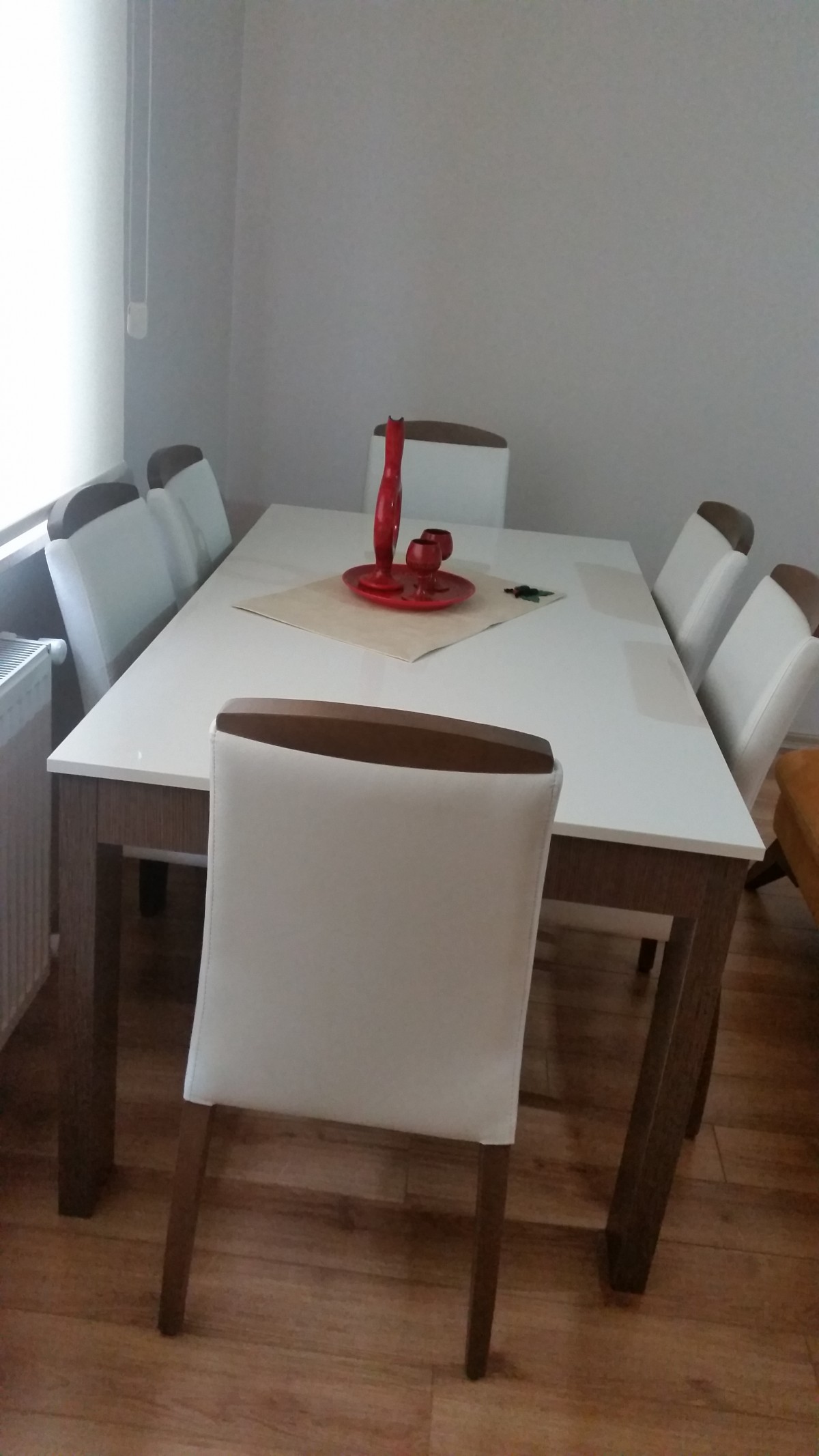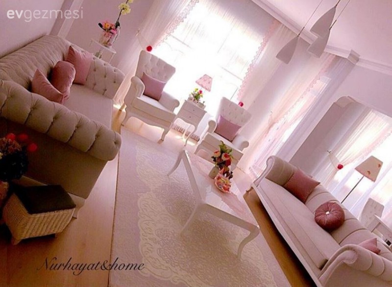 koltuklar çok güzel olmasına rağmen diğer detaylar oturma odası havası vermiş. ayrı bir salonunuz yoksa burda misafir de ağırlayacağınız için daha şık olmalı. halıdan başlayın beyaz bir halı ve aynı şekilde tül beyaz bir perde. mutlaka taşlı bir avize olmalı ve masanın üzerine de şık şamdanlar ve arkasına baklava ayna çok iyi olacaktır.