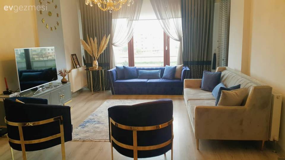 Dekorasyonunda nötrlerin dışında bir renk kullanmamış Hülya hanım. Bu seçimi gösterişli mobilya ve aksesuarların daha da öne çıkmasını sağlıyor. Evet, renk pek yok. Ama renk yok diye monoton bir dekor olacak diye bir şey de yok.