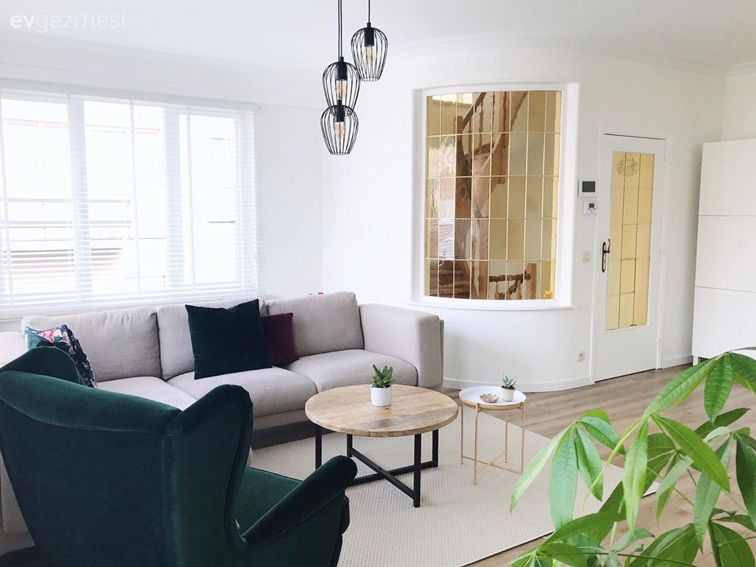 Ev sahibimiz, evinin kendine özgü bir sesi olmasını seviyor. Bu yenileme sırasında evin tüm mimarisini de değiştirmek istememiş. Salondaki camekanı orjinal haliyle bırakmış mesela. Evin eski halini de hatırlatmasını, farklılığını seviyor. Bir de üstüne merdiven boşluğuna salonun ışığını taşıyor.