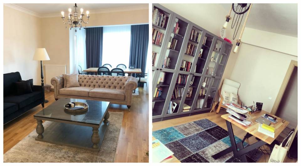 Evin fotoğraflarına geçtiğinizde sizi büyüleyecek ahşap mobilyaların nereden alındığını merak ederseniz diye baştan söyleyelim: Birçoğu ev sahibimizin eşinin el emeği. Yani, anlayacağınız üzere bu evde, zevk, yetenek ve hayal gücü birleşince bu manzara ortaya çıkmış.