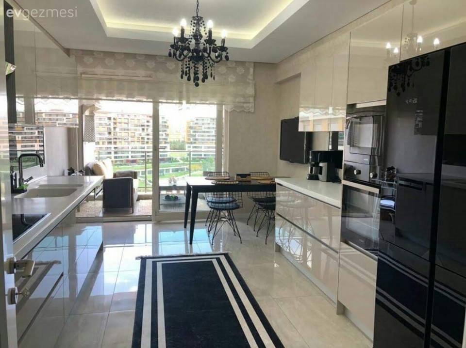 İşlevselliğin önemli olduğu bir yerde hem tezgah hem de masa olarak kullanılacak bir mutfak adasının olması kadar doğru bir hamle olamazdı! Mutfağın ikinci masasına dönüşen bu alan, ferahlığın rengi beyazla daha bir güzelleşmiş.