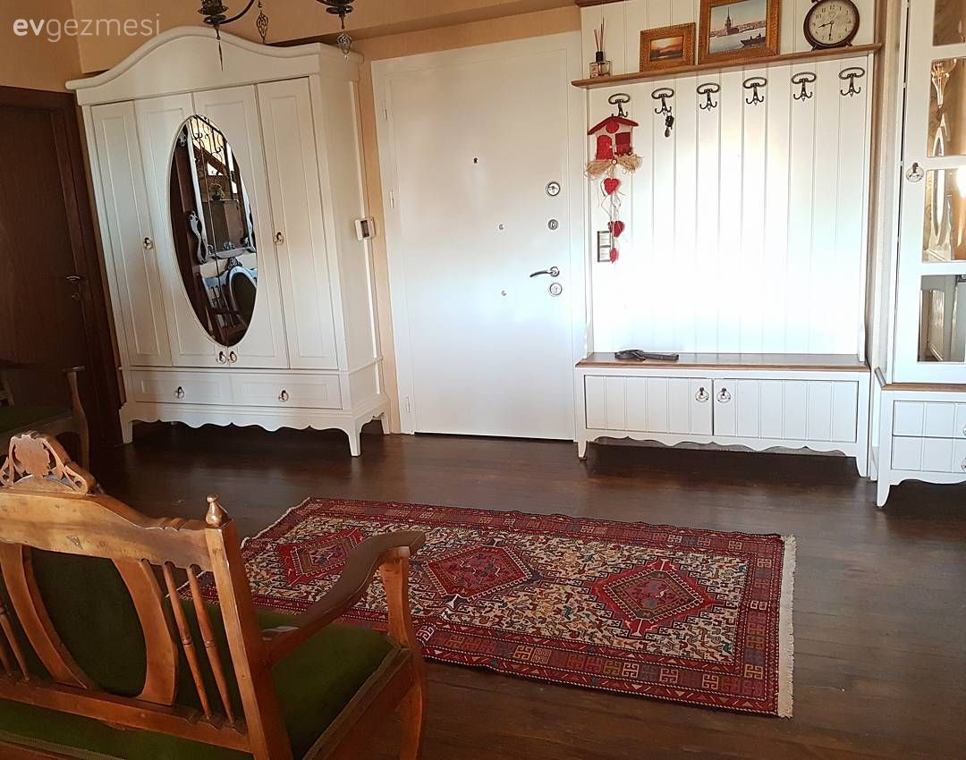 Dubleks evler, Antre, Kahverengi, Yeşil, Krem, Antre halısı, El dokuma halı, Bank, Duvar dekorasyonu, Parke, Antre avizesi, Beyaz, Vestiyer