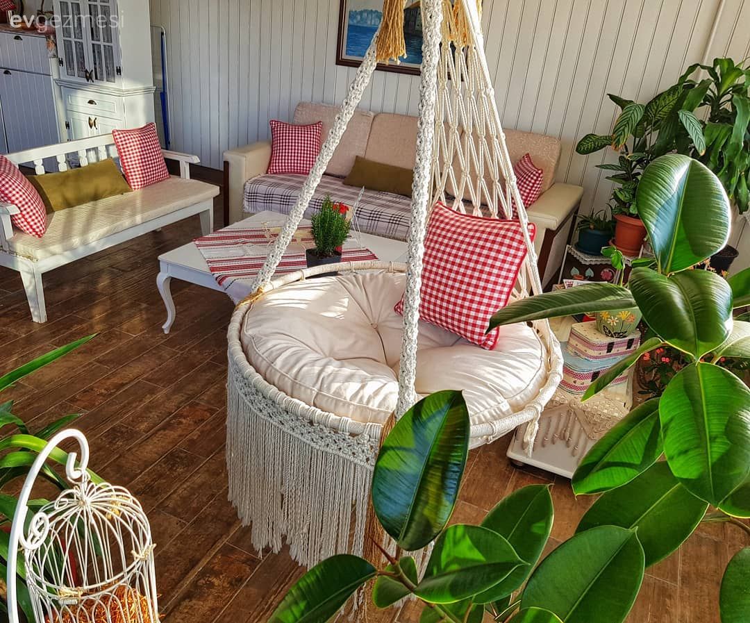 Kış bahçesi, Kırmızı, Beyaz, Lambri, Duvar çıtalama, Krem, Halı, Mumluk, Pötikare kumaş, Fener, Ev Aksesuar, Tablo, Duvar dekorasyonu, Bahçe oturma grubu, Bahçe, Ev bitkisi, Ferforje, Sehpa, Tavana monte salıncak, Salıncak