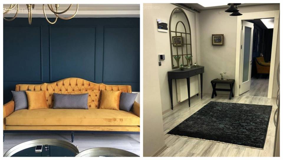Konsol, orta sehpa ve yemek masasında aynalı mobilyaları tercih eden ev sahibimiz, istediği ışıltıya da bu şekilde ulaşmış. Bu haliyle, salonundaki romantik ambiyansın çekiciliğini de daha bir artırmış.