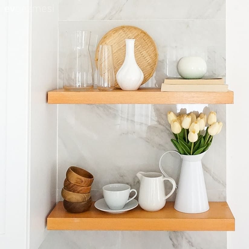 Beyazın yanında pek renk yok. Ama ev monoton bir görünümde de değil! Çünkü beyazı hareketlendiren ahşap ve mermer gibi natürel detaylar var. Bu detaylarla sade ve beyaz evimiz, hem sıcak hem de kaliteli.