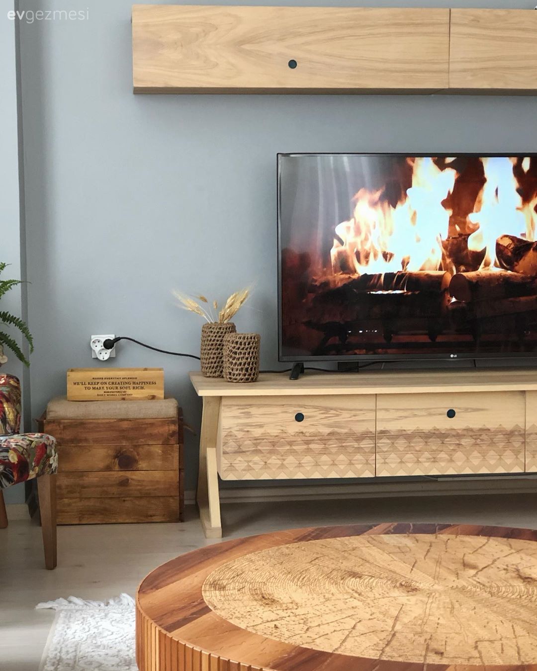 Orta sehpasında, yemek masasında ve evinde kullandığı birçok aksesuarında ahşabı kullanmaktan hiç çekinmiyor. Pek de iyi yapıyor! Çünkü ortamdaki keyifli dekorun önemli nedeni bu ahşaplar.