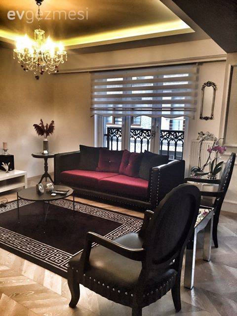 Modern stilde geometrik desenler kadar geometrik formlu mobilyalar da çok sevilir. Büyük boyutlu geniş koltuklar ve sehpalar, şık oldukları kadar kullanışlı oldukları için çokça tercih edilir. Tıpkı bu dekorda olduğu gibi.