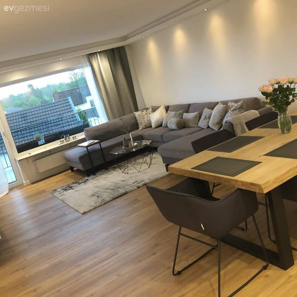 Salon dekorunda şıklık kadar öne çıkan rahatlıkta da pay sahibi, mobilyalar: Salonu dolduran köşe koltuk ve çok yer kaplamayan orta sehpa ile ortamın şıklığına konfor da katılmış.