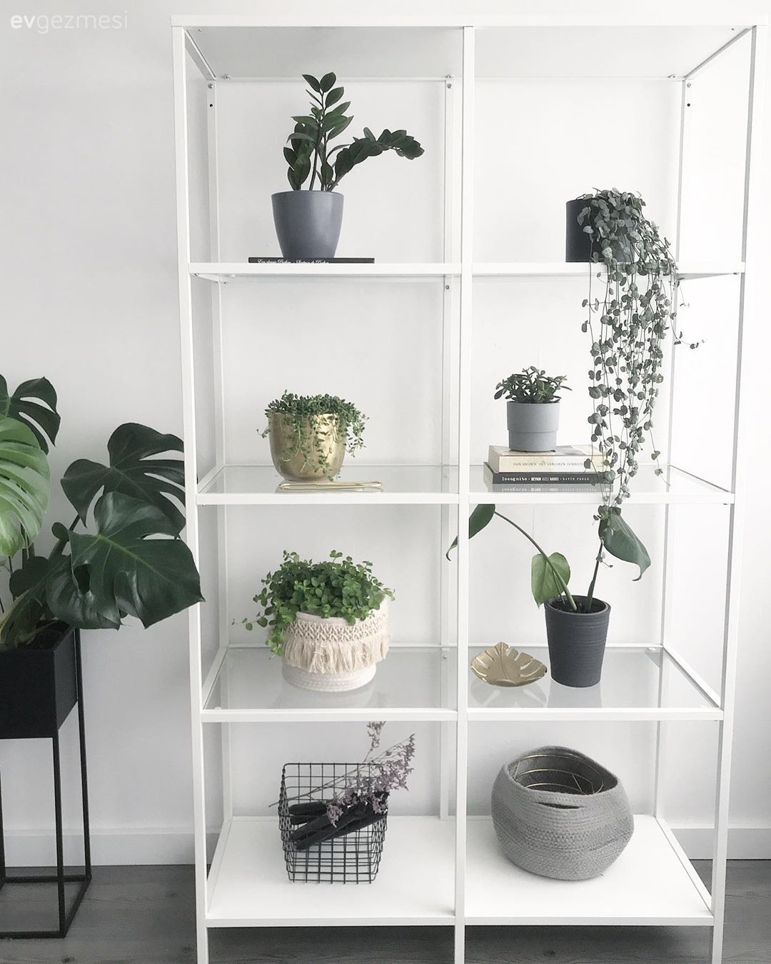 Minimalist felsefenin aksesuarlara karşı olmadığını bilen Merve Hanım, dekoruna şıklık katacak aksesuarları, metal ve camla tasarlanmış bir açık dolapta sergilemiş. Bu şekilde hem aksesuarları dekorundan eksik etmemiş, hem de derli toplu durmalarını sağlamış.