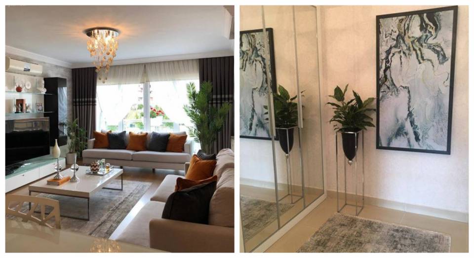 Yemek bölümündeki konsolun devamı olan tv sehpası, karizmatik görünüme sahip aynası ve şık halılarıyla tamamlanan dekorun bütün karelerine geçmeden önce şöylece bir not bırakalım: