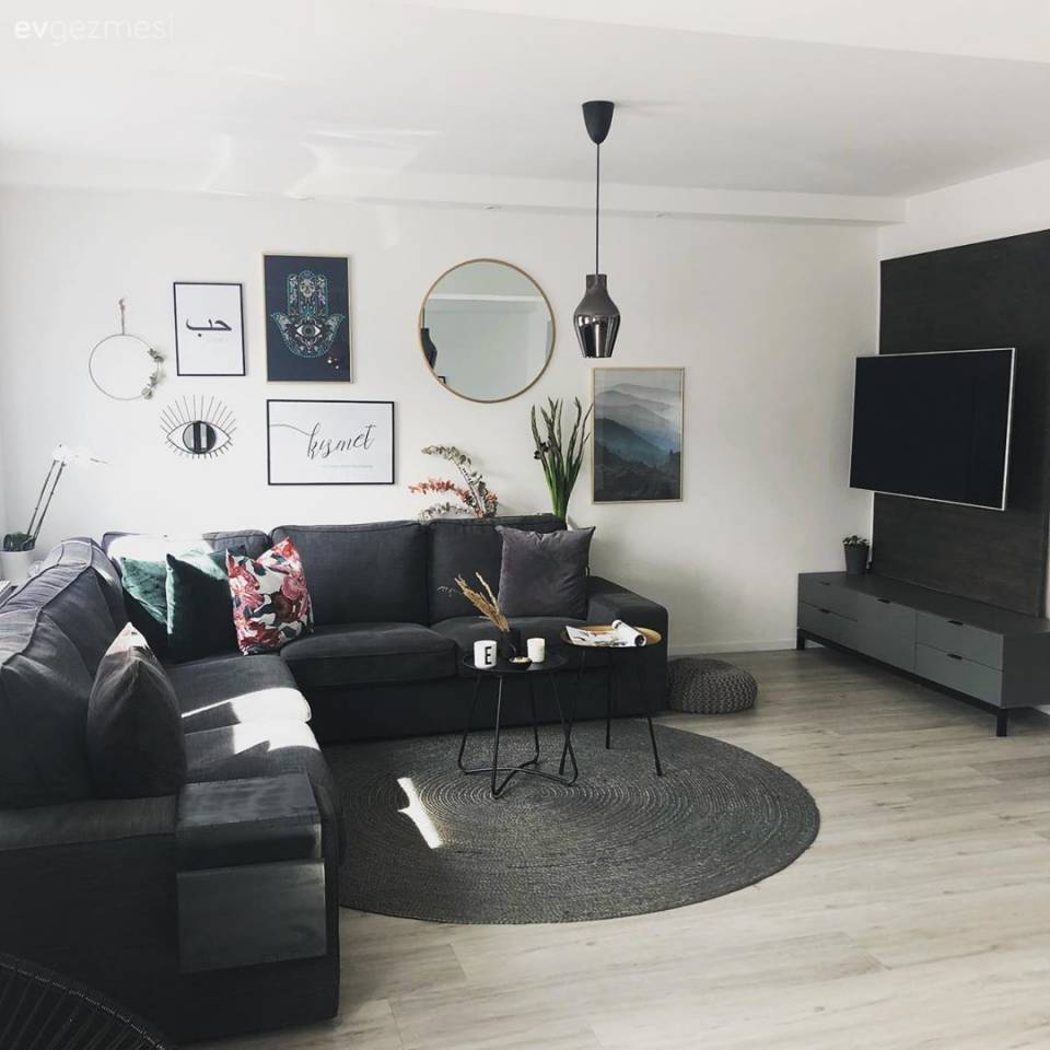Mutfaktan sonra tadilat işlerinden nasibini alan salonda da, yine öncelik ferahlığa verilmiş. Bunun için alanı hem aydınlatacak hem de ferahlatacak güzel bir çözüme başvurulmuş: Aynalar...