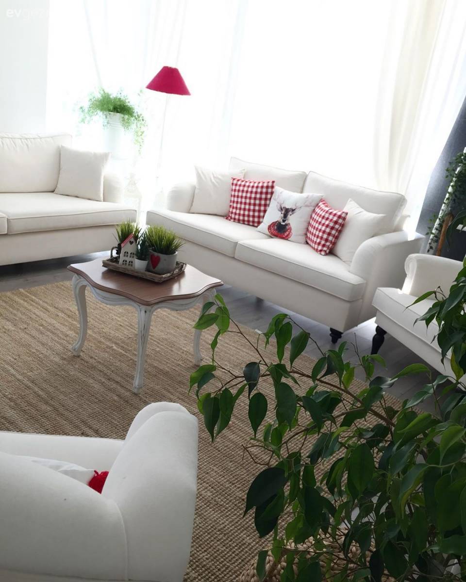 Seçilen mobilyalarda öncelikle aranan kriter konfor! Bu yüzden rahat pofuduk koltuklar seçilmiş. Pofuduk haliyle oldukça sevimli de görünen koltuğun yanına bir de zarif tasarımlı berjer eklenmiş.