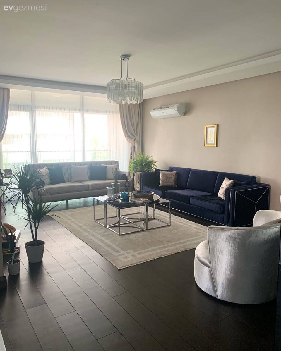 Salonu rahatlıklarıyla dolduran beyaz koltuklar sade görünümlerini, üstlerindeki pembe kırlentlerle geride bırakmış. Kırlentlerle aynı tonlardaki fon perdeler de eklenince dekorun keyifli detayları ortaya çıkmaya başlamış.
