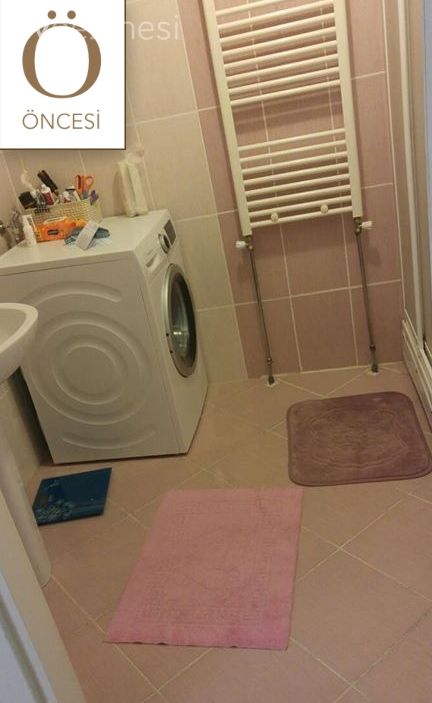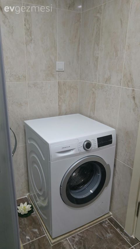 Alanın verimsiz olmasının önemli nedeni yanlış konumlandırma. Bunun önüne geçmek için lavabonun yanında çamaşır makinesine ayrılan alana klozet yerleştirilmiş. Çamaşır makinesi de kapının arkasındaki boşluğa taşınmış.