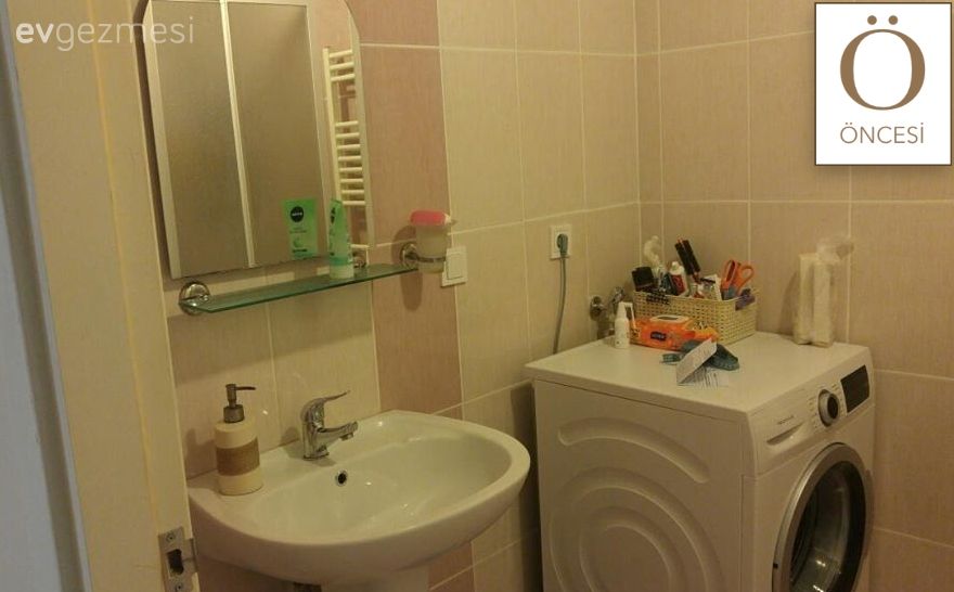 Banyo dolabını da değiştiren Seda Hanım, bu şekilde bütün alanı yepyeni bir hale getirmiş.