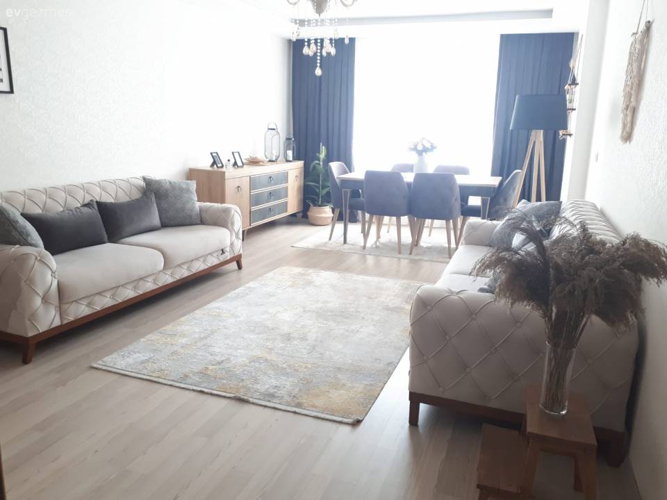 Harika değişim öyküsüne ilk olarak salondan başlayalım. Bu alanda camlar dışında her şey yeniden yaptırılmış. Duvar rengi, parkeler ve mobilyalar tamamen yeni ev sahibinin zevkine uygun hale getirilmiş.