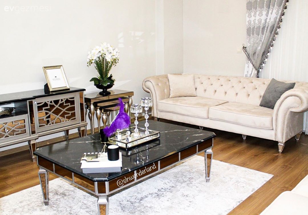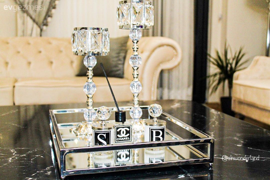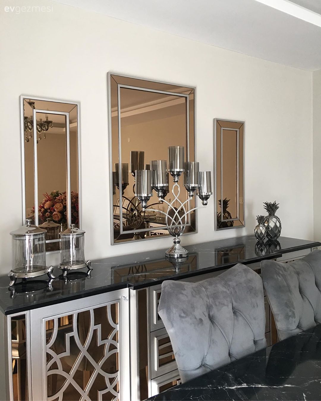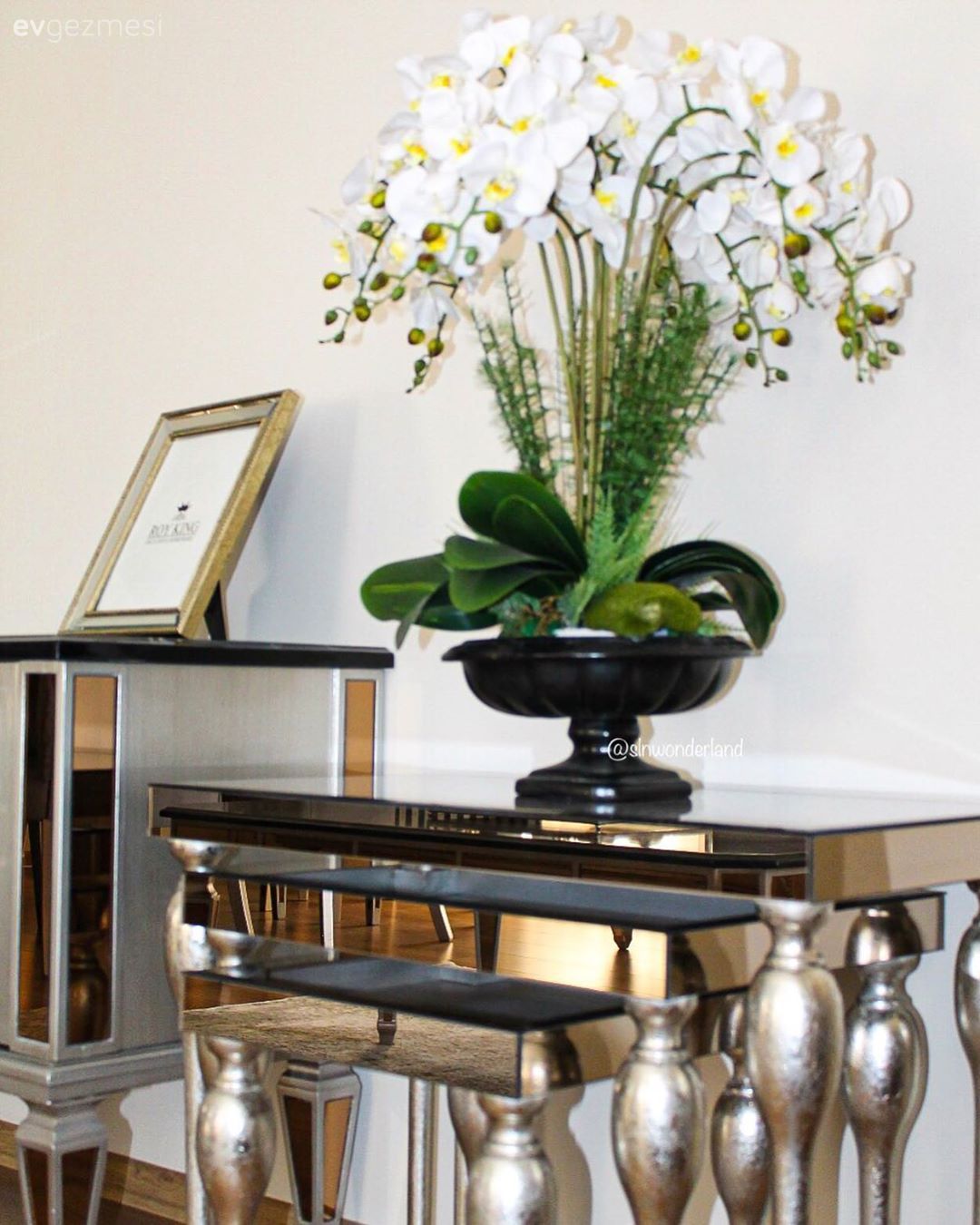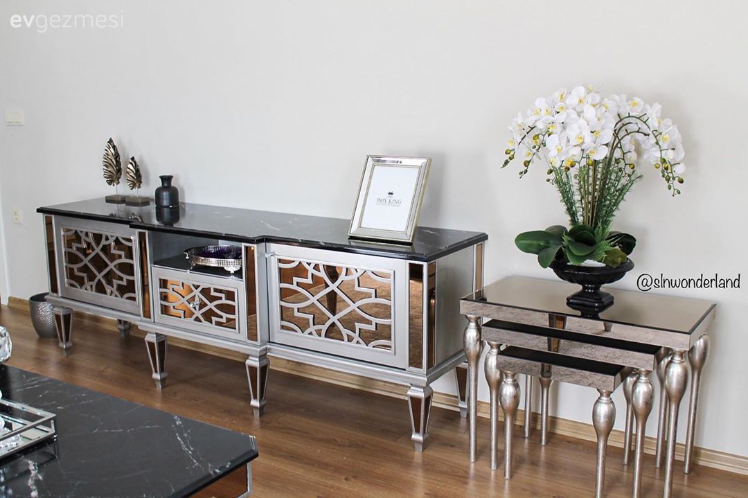 Aynalı mobilyaların sevildiğini söylemiştik. Hem de ne sevilmek! Selen Hanım, dekorunda kullandığı bütün tamamlayıcı parçalarında ayna detaylarına yer vererek art dekoya ne kadar sadık olduğunu göstermiş.