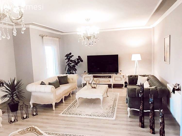 Sobanın yanına kondurulan gramafonu, İskandinav stile özgü berjeri, doğallığı her ilmeğiyle yansıtan jüt halısı ve tam da bu eve ait olan avizeleriyle sizleri karşılayacak dekorumuz oldukça zevkli.