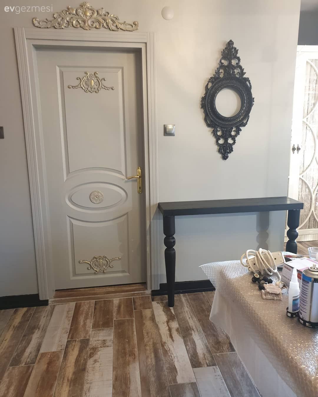 Kendin Yap, Duvar çıtalama, Pembe, Gri, Siyah, Beyaz, Altın, Varaklı Mobilya, Yemek masası, Sandalye, Duvar dekorasyonu, Kapı boyama, Avize, Aydınlatma, Yemek odası avizesi