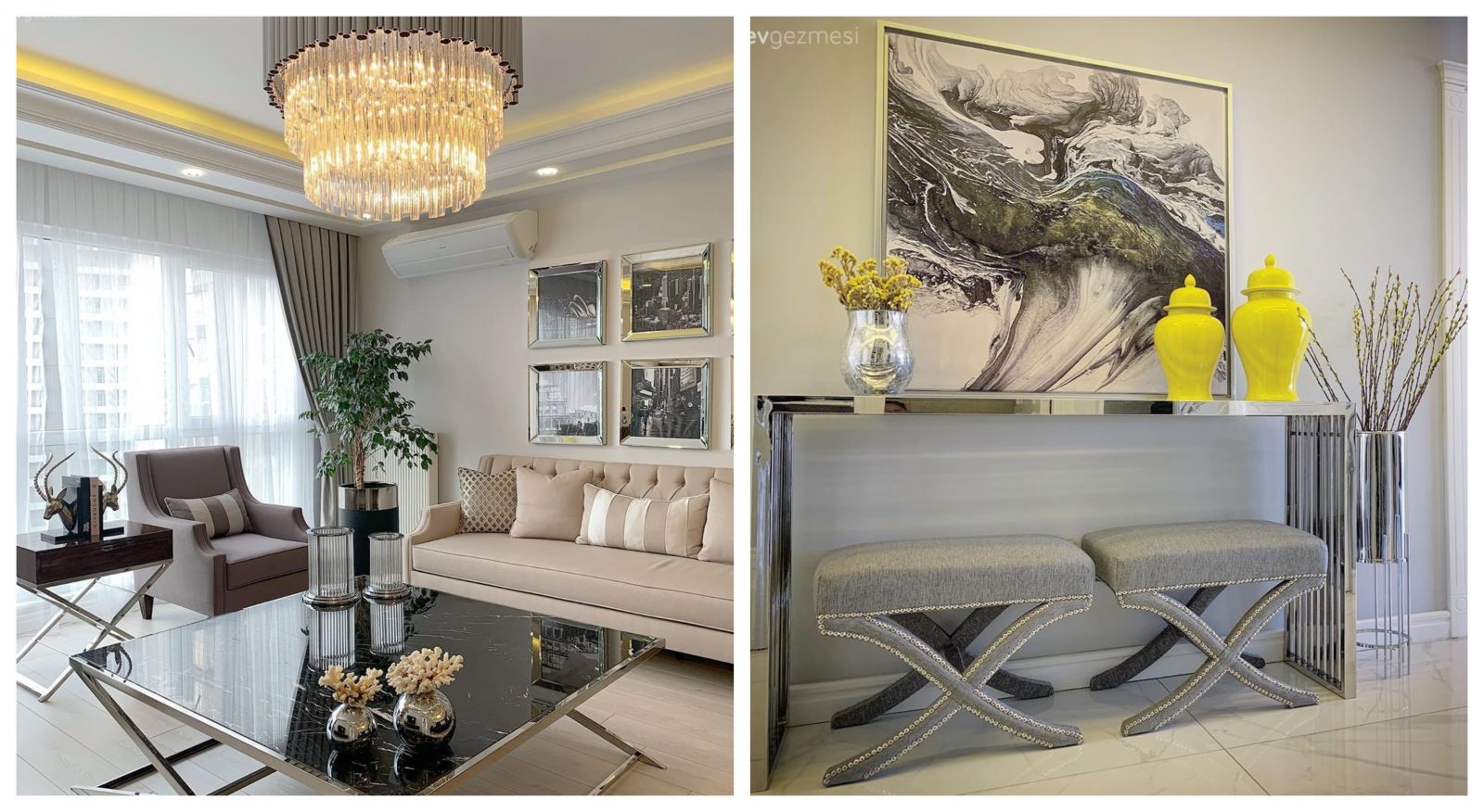 Şık mobilyalar, ayna detayları ve her köşeden yansıyan iddialı aksesuarlar... Şimdi konuk olacağımız evde bunları çokça göreceksiniz. Çünkü burada art dekonun sesleri fazlaca yankılanıyor.