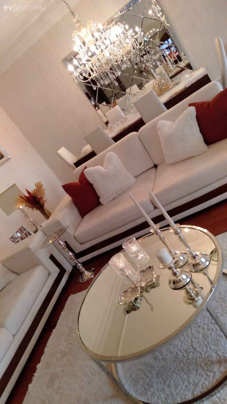 Duvarın önüne kondurulan oval masa ve sandalyeler, salonun şıklığını pekiştiriken ortama samimiyet katmayı da ihmal etmemiş.