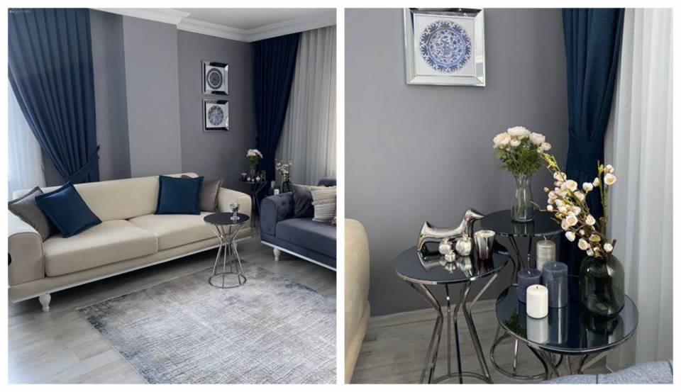 Eşya yığınından hoşlanmayan ev sahibimiz, hem ortada hem de yanda sehpa kullanmak yerine, ihtiyaca göre konumlandıracağı sehpalara yer vermiş.