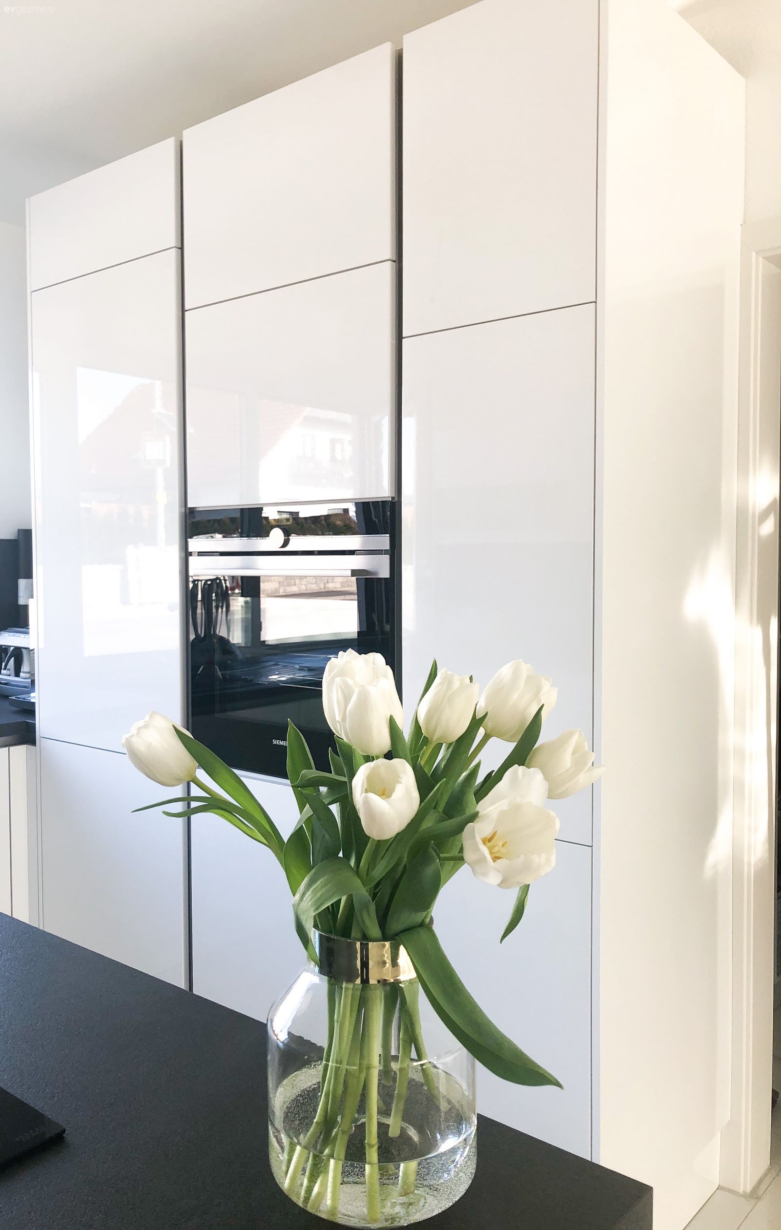 Mutfak, Beyaz, Siyah, Ekstra mutfak dolabı, Cam Ankastre, Ankastre, Mutfak tezgahı, Vazo, Ev Aksesuar, Çiçekler