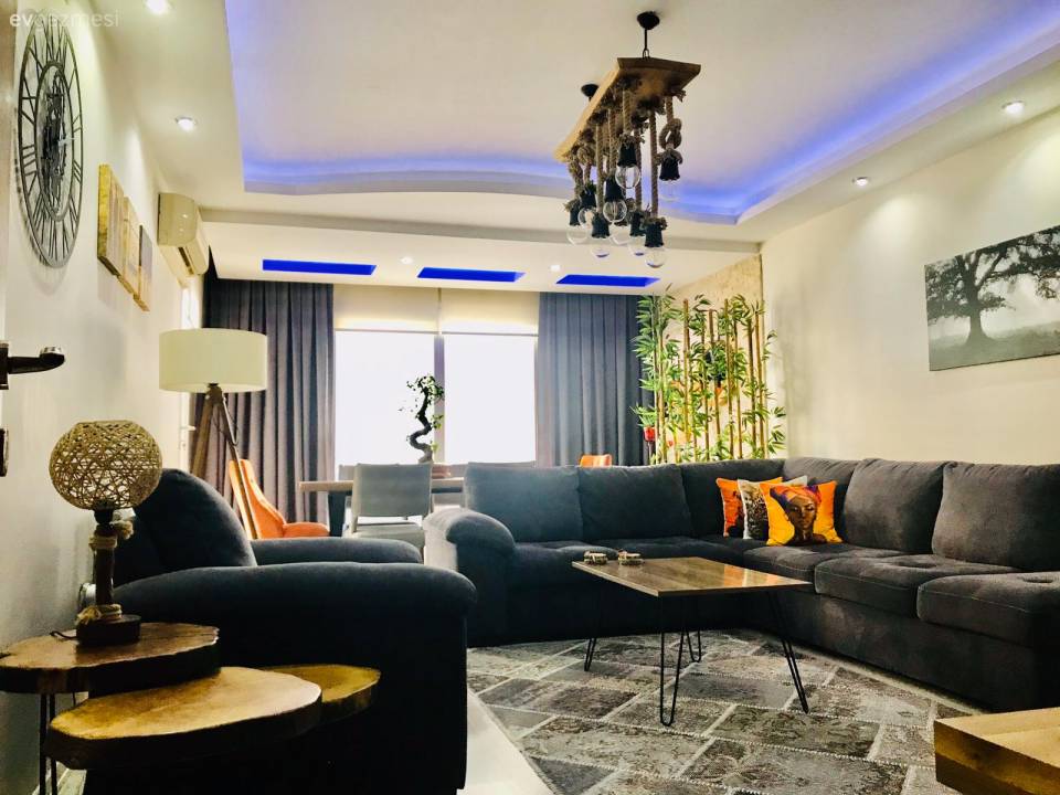 Salonunda gösteriş seviyesini biraz daha artırmak isteyen ev sahibimiz, dekora eklediği taşlı avize ve mobilya detaylarındaki altın işlemelerle amacına ulaşmış.
