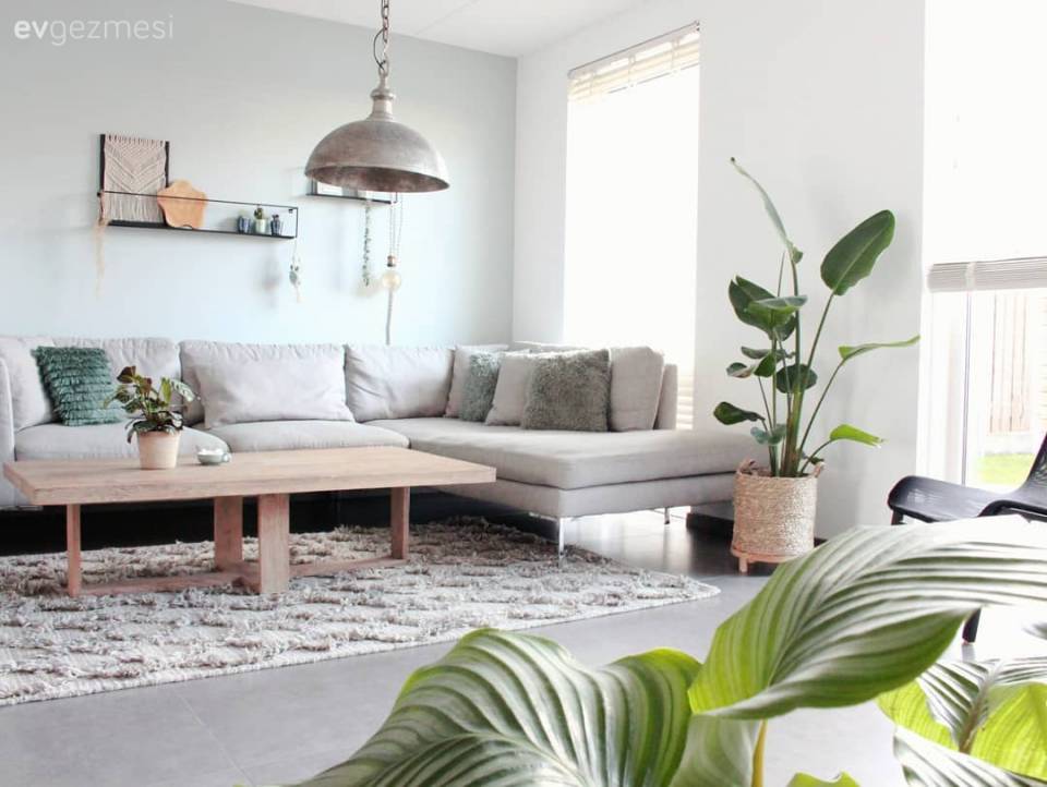 Filiz Hanım'ın göz bebeği olan grinin birçok alanda kullanıldığı evde, yardımcı renkler olarak mavinin tonlarına ve beyaza başvurulmuş: Bazı alanlarda mavinin tonu belirginleşmis, bazı alanlarda da daha sade bırakılmış.