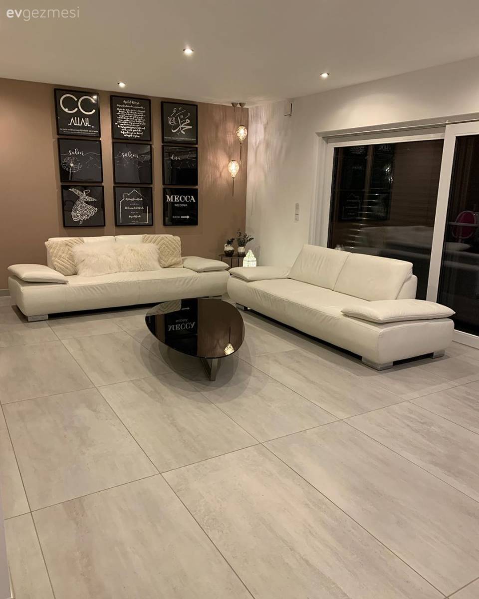 Daha eksikleri olan evin, tamamlanan bölümlerinden salona uğradığımızda art dekonun cazibesi bizi karşılıyor. Özel olarak yaptırdığı koltukları, yeni evine de olduğu gibi getiren Dilek Hanım, oldukça şık bir alan oluşturmuş.