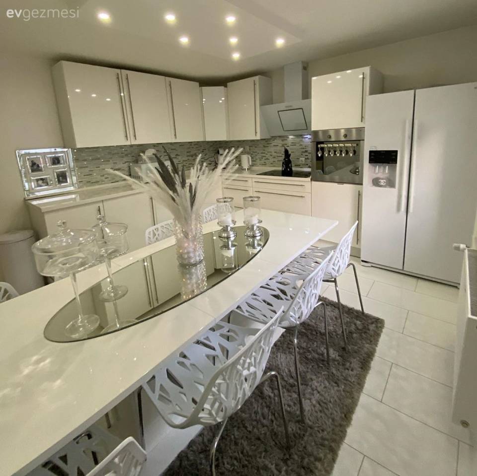 Ahşabı oldukça seven ev sahibimiz, salonda kullandığı ahşap tonunun aynısını mutfak dolaplarında da kullnmış: Beyazın yanına gelen bu tonlar, hem beyaza hareket katmış hem de ortama natürellik.