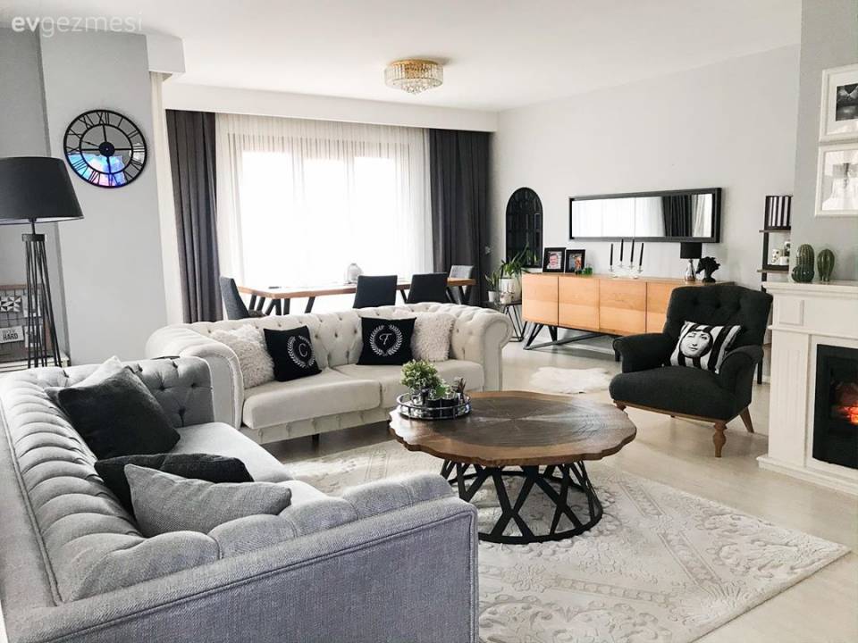 Salon, Art deko, Bej, Krem, Beyaz, Antrasit duvar, Duvar dekorasyonu, Ayna, Aydınlatma, Koltuk takımı, Kırlent, Ev tekstili, Şamdan, Ev Aksesuar, Orta sehpa, Sehpa, Aynalı mobilya, Halı, Salon halısı, Sehpa üstü aksesuarı, Dekoratif ayna, Metal ayaklı sehpa, Led peri ışık, Altın