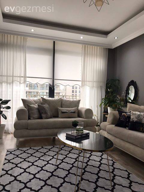 Sandalye detaylarındaki altın metalleri, evin diğer alanlarına da yaymak isteyen Müge Hanım, gözünü avize ve sehpalara dikmiş. Orta sehpa da ve avizelerde aynı metal tonunu kullanarak, uyumlu bir metal kardeşliği yaratmış!