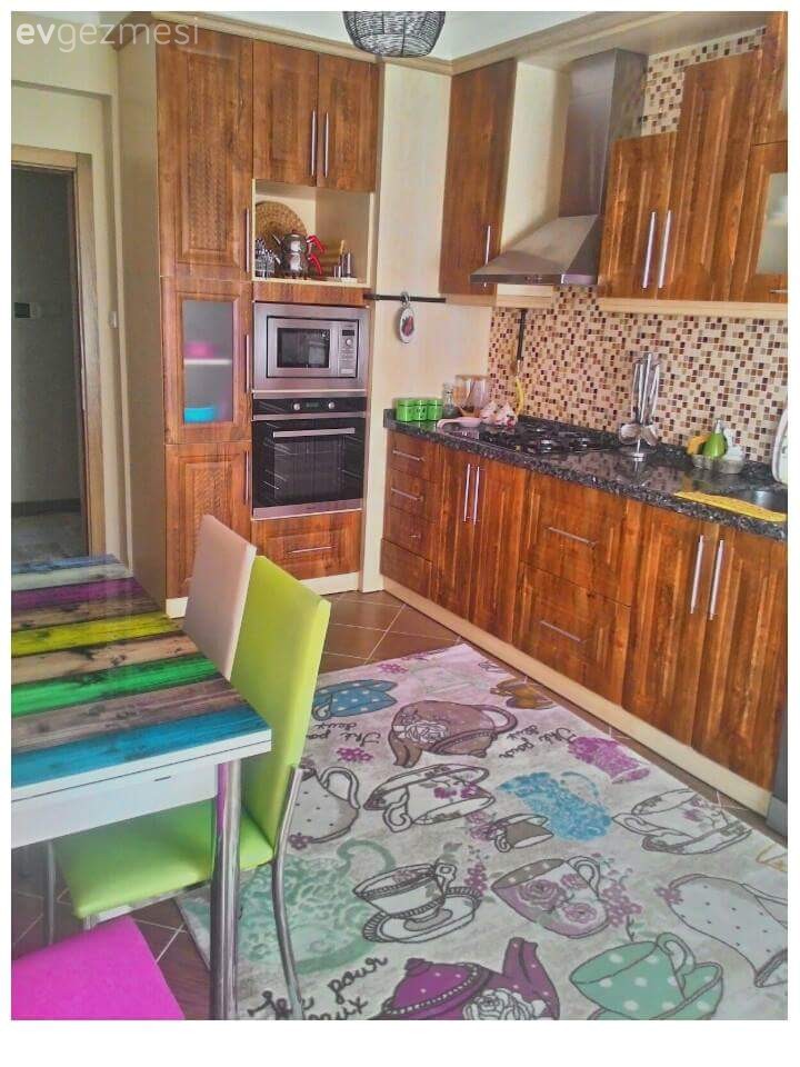 Evin havası çok sıcak olmuş. Mutfak masası çok hoş nereden aldını? Yanlız mutfak halısı ve sandalyeler sade bir renk olsa daha iyi olurdu diye düşünmeden edemedim