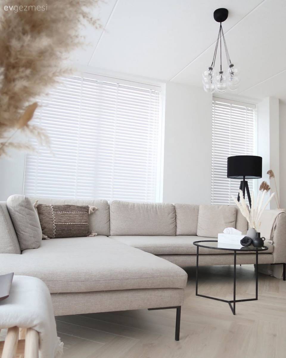 Rahatlığıyla alanı dolduran köşe koltuk, dingin kahve tonunu üstüne almış. Hemen önünde duran masif sehpa da, kahverengi tonuna dengeyi sağlayan dokunuş olmuş.