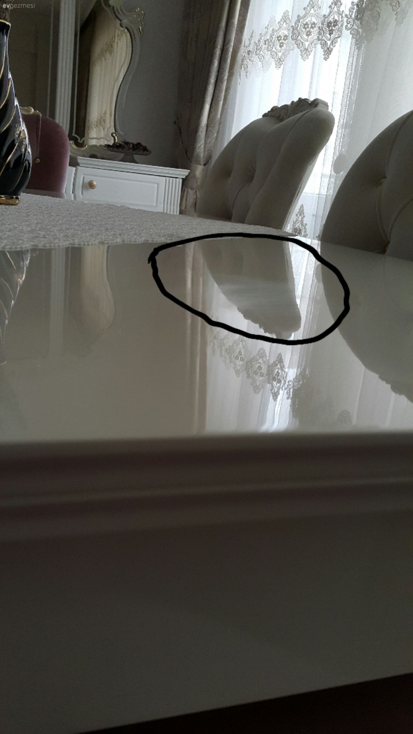 Dekorun yemek bölümüne ayrılan kısım da değişmiş tabi! Eski yemek masası ve sandalyeler, koltuklara uyum sağlamak için beyaza dönüşmüş.