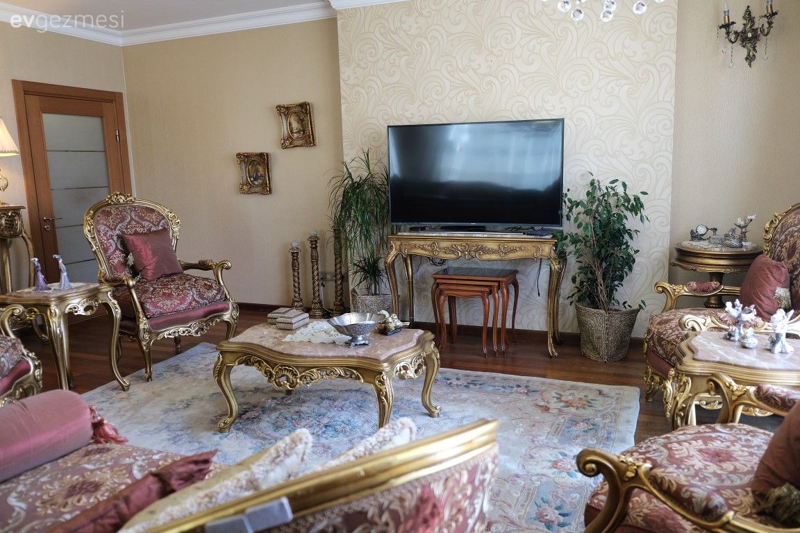 Merhaba salon mobilyalarınız kaliteli ve şık duruyor ama sürekli salonda oturuyorsanız pek rahat olmayabilir. Ben olsam konsolun yanındaki aynayı ve altındaki fiskos kanepeyi kaldırıp tv yi oraya alırdım. Tv nin yerine de bordo ipek kadifeden tamamen kumaş bir kanepe koyardım. Berjerlerin ikisini de kaldırırdım. Orta sehpayı da daha büyük demiklasik bir sehpa ile değiştirirdim.