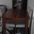Merhaba hazeller resim goremedigim için bi şey söylemek ne derece doğru ama size onerim dekoratif sentetik boyalar var ahşap için objeniz sadece masa ise bir buçuk yada iki litre yeter sanırım bu gün nalburlarda renk bankası var marka önemli degil bütün markalar ayni amaca hizmet eder su marka en iyisidir demek yanlış olur çünkü hepsi bir rekabet içinde çünkü butcenize gore kendiniz seçebilirsiniz bir bakin nalburda istediğiniz renkte hazır olarak kutu ile varmı var ise sadece imalat tarihine dikkat edin imalat tarihi eski boya ucuzdur ama sağlıklı değildir eğer istediğiniz renk hazır olarak yoksa rica edin dekoratif sentetik ahşap boyası su renk istiyorum iki litre yada siz ne kadar isterseniz sandalyelerde var çünkü onlar içinde isteyebilirsiniz birde artan boyayı saklarsiniz rutus için de kullanabilirsiniz verirler uzerine boya sonrası vernik atmaniza da gerek kalmaz
