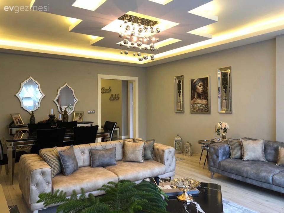 Koltuk Doğtaş Mobilya'dan. Diğer mobilya ve aksesuarlar da Ikea'dan. Avize özel olarak yaptırılmış.