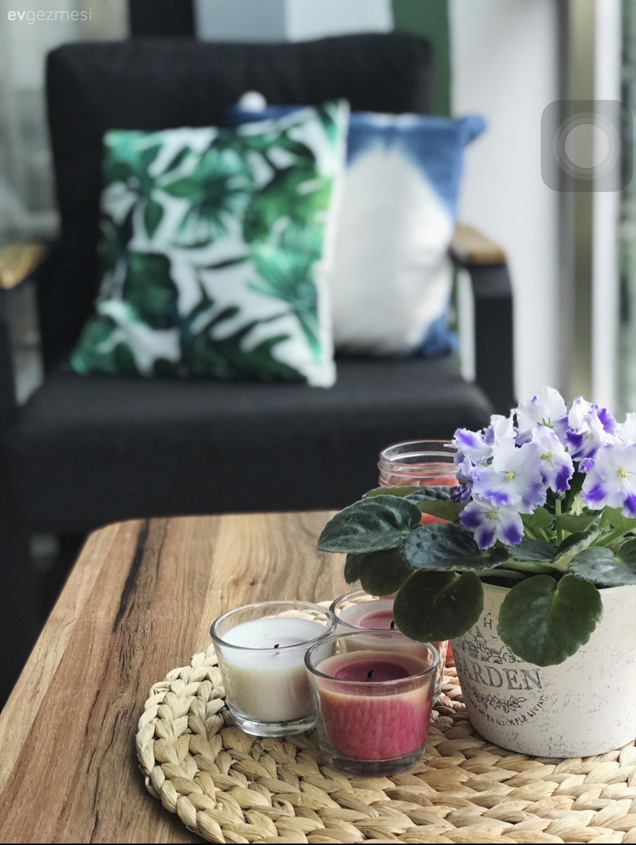 Evinin iç mekanlarında değişiklik yapan Şeyda Hanım, şimdilik bizi balkonunda ağırlıyor. Balkon deyince bu alanın az kullanıldığını düşünüyorsanız yanılıyorsunuz. Çünkü ev sahibimiz ve eşi en çok burayı kullanıyor. Bu yüzden de öncelikle bu alanı tamamlamak istemişler.