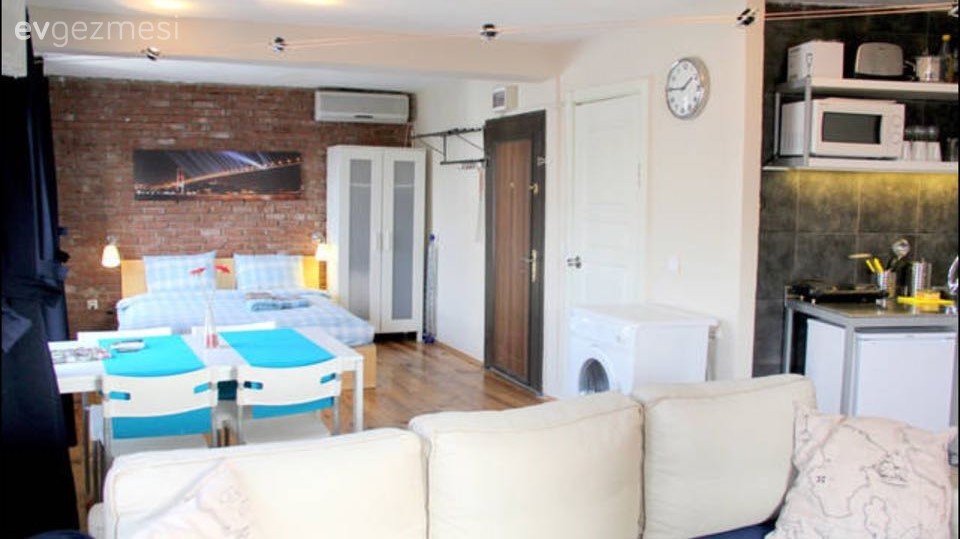 1+0 şeklinde planlanan bu alanlar, mutfak, yatak ve oturma alanını aynı ortamda barındırıyor. İstanbul Galata'da bu şekilde bir evi aldıktan sonra, küçük, kompakt ve yaşamak isteyeceğini bir alana dönüştüren Enes Beyin evine konuğuz.