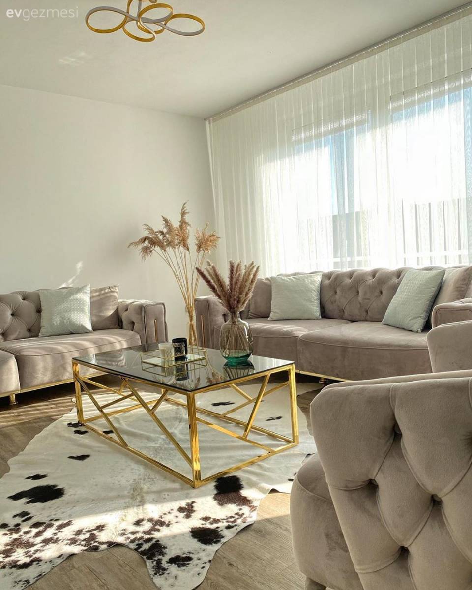 Mobilya seçerken temizlikte kolaylık sağlayan eşyalar seçmeye özen gösteren ev sahibimiz, ahşap ayaklı koltuk takımı kullanarak bu amacına hizmet etmiş.