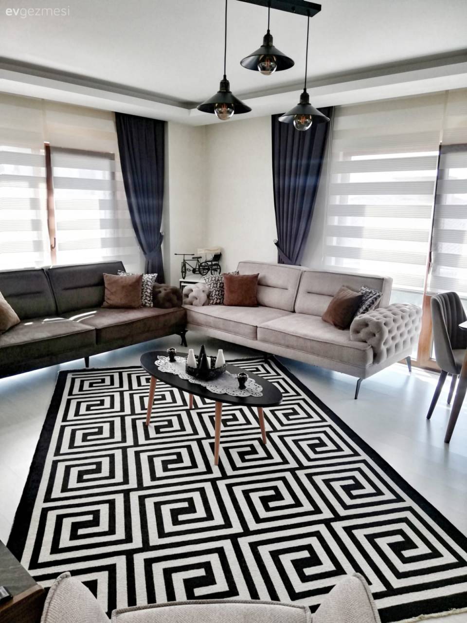 Bu alanda da rustik esintilere ağırlık veren Sibel Hanım, masif ahşaptan yapılmış orta sehpa ve tv ünitesiyle alanın cazibesine cazibe katmış.