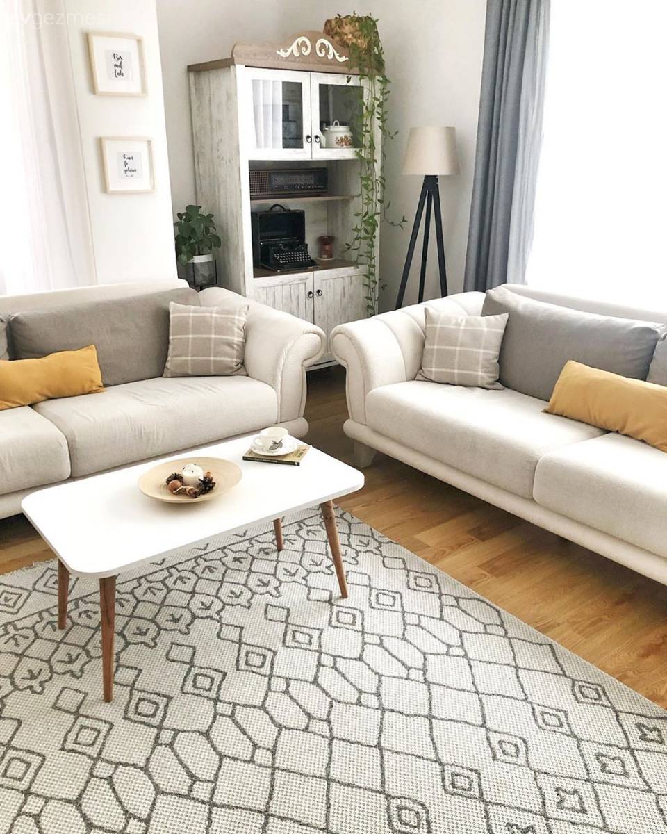 Salon, Küçük salon dekorasyonu, Küçük Ev, Bohem Dekorasyon, İskandinav, Köşe koltuk, Koltuk takımı, Beyaz, Siyah, Krem, Turuncu, Halı, Salon halısı, Berjer, Fon perde, Perde, Tül perde, Orta sehpa, Sehpa, Metal ayaklı sehpa, Tablo, Duvar dekorasyonu, Kırlent, Ev tekstili, Öncesi / Sonrası, Krem duvar