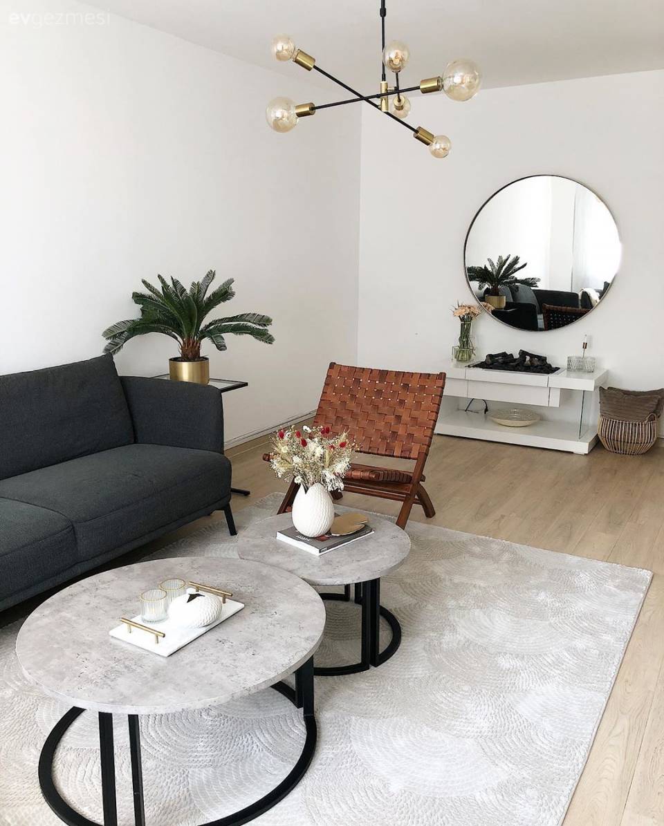 Amerikan mutfak ile oturma alanı arasına yerleştirilen yuvarlak masa, alanın en samimi parçası. Dekora sıcaklık katan bu mobilya, çok yer kaplamadığı için de ayrıca iyi!