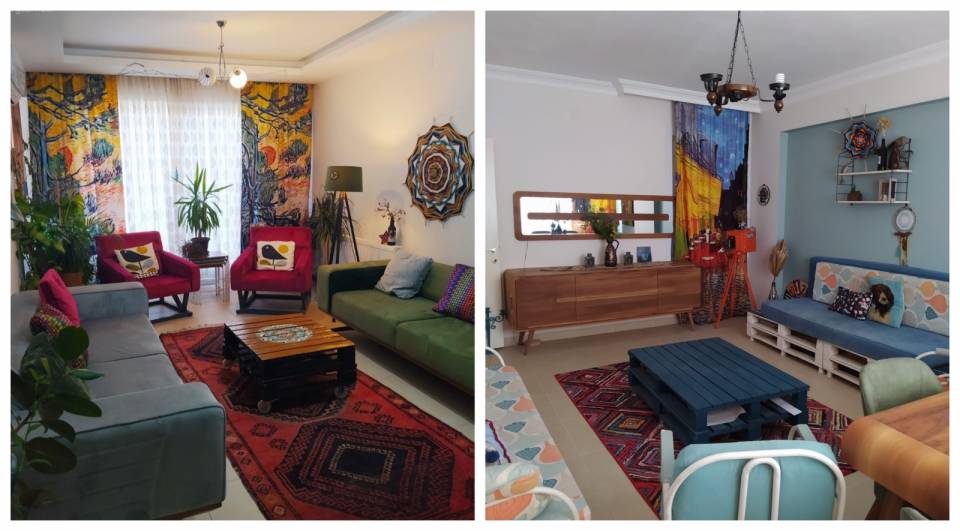 Onun tabiriyle mobilya mağazası gibi evler arttıkça her şey çok tektip hele gelmiş. Ev sahibimiz de buna inat olarak en çok yaşayan bir ev oluşturmak istemiş.