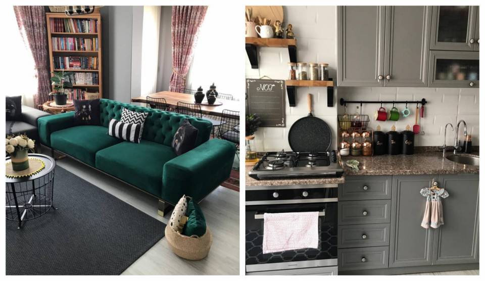 Ortamda ferah bir görünüm de isteyen Feride Hanım, nötr ve açık tonlara ağırlık vermiş. Grinin açık bir tonu ve beyazlar, bu duruma çözüm olmuş.