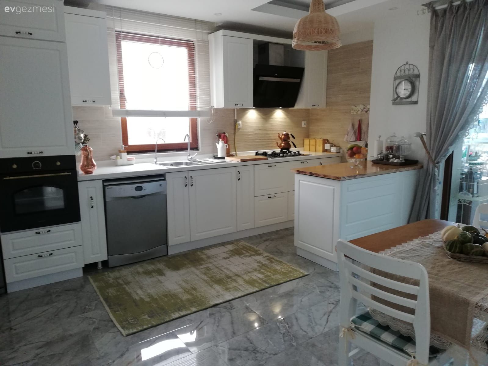 Mutfak, Beyaz ve ahşap mutfak, Beyaz, Krem, Mutfak yarım adası, Mutfak tezgahı, Mutfak tezgah arası, Duvar kağıdı, Duvar dekorasyonu, Country, Mutfak Avize Modelleri, Hasır avize, Mutfak perdesi, Gri, Mutfak rafı, Mutfak zemin seramikleri, Mutfak masası, Sandalye, Mutfak halısı