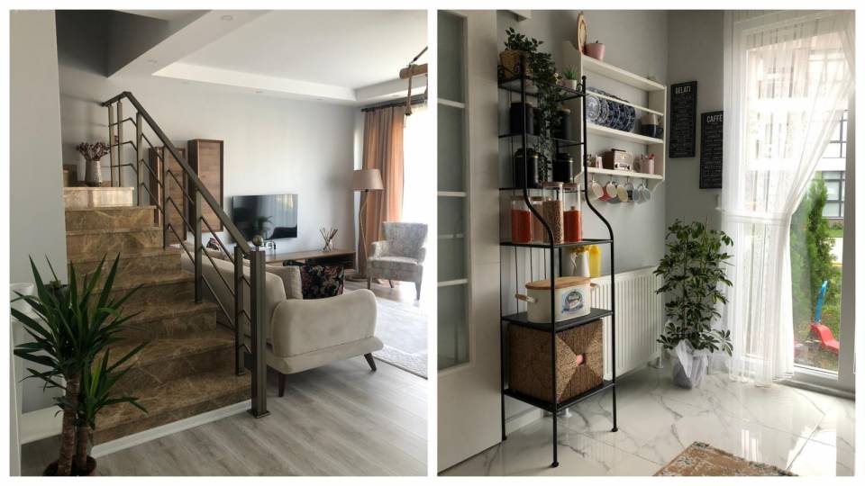 Amerikan Mutfak, Mutfak, Dubleks evler, Saksı, Ev bitkisi, Hasır sandalye, Beyaz, Kahverengi, Köşe koltuk, Koltuk takımı, Ev Aksesuar, Geometrik desen, Desenler, Mutfak halısı, Halı, Fon perde, Perde, Tül perde, Mutfak Avize Modelleri, Hasır avize, Duvar panosu, Duvar dekorasyonu, Siyah, Kırlent, Ev tekstili, Sehpa, Beyaz koltuk